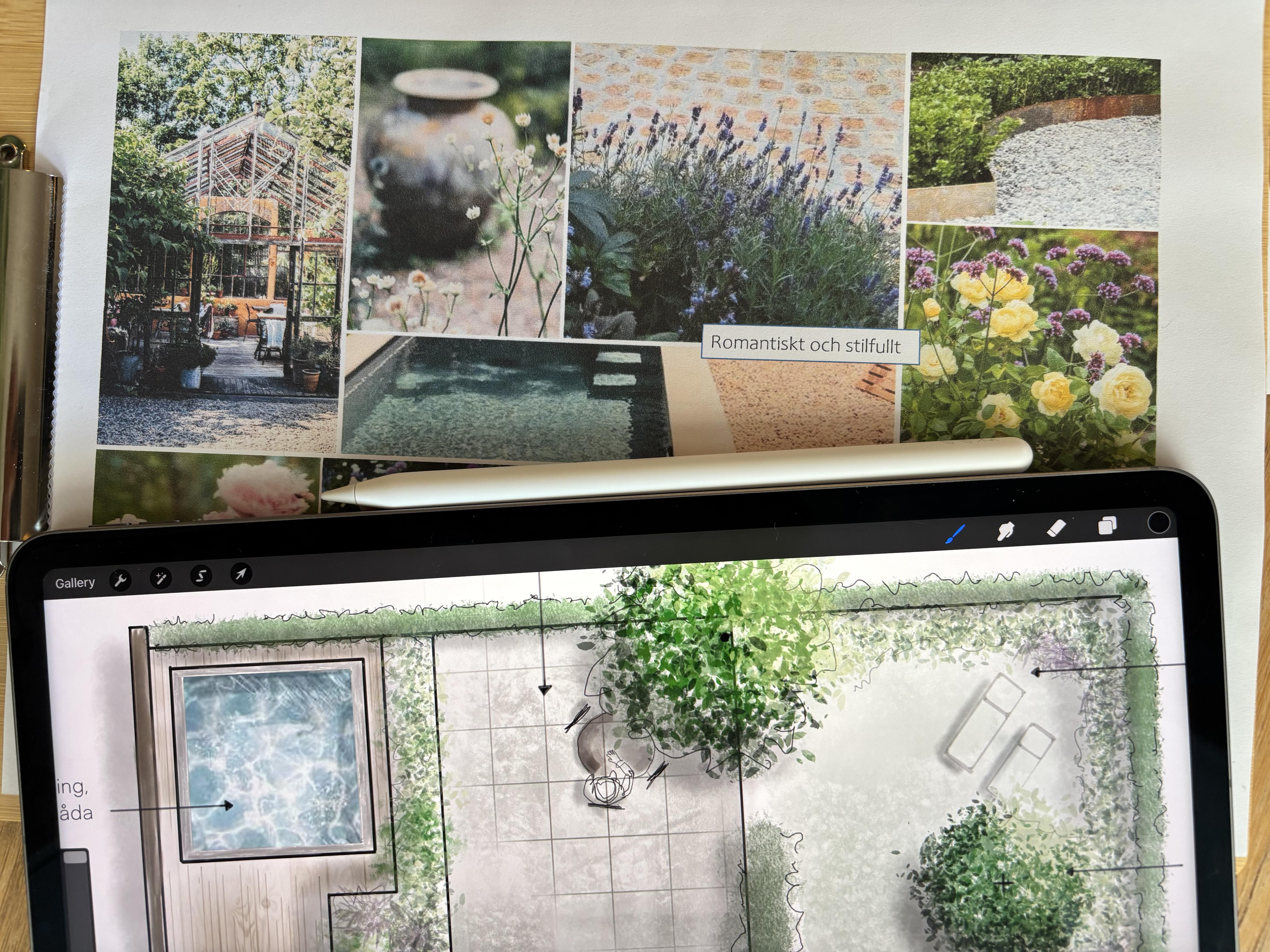 Skiss - Efter uppstartsmötet får du olika grovt skissade förslag på din trädgård skickad digitalt.